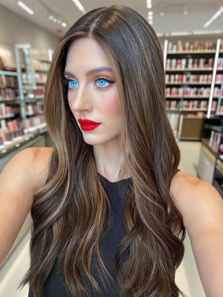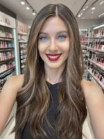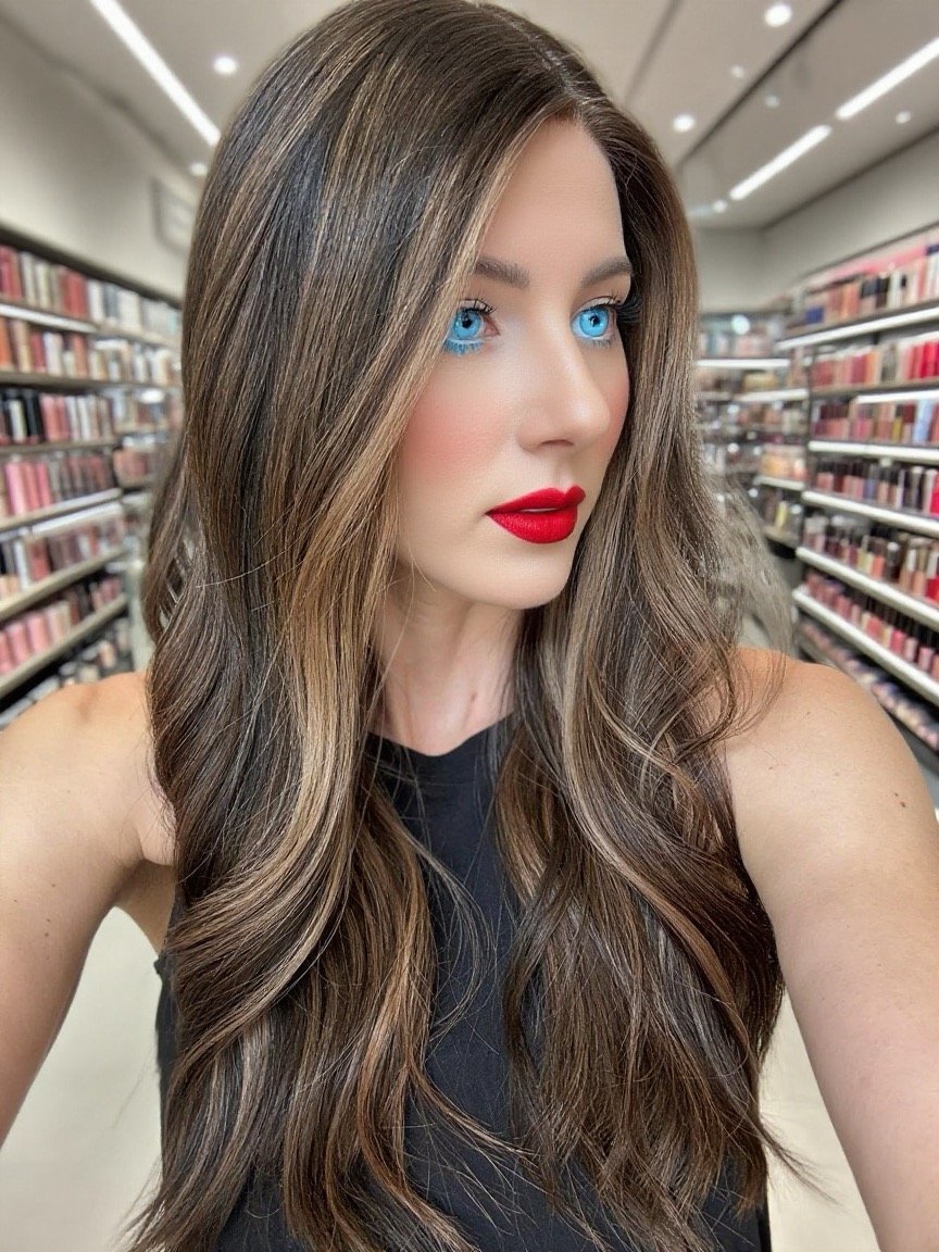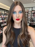 * Color: Darkest brown with warm caramel balayage.
